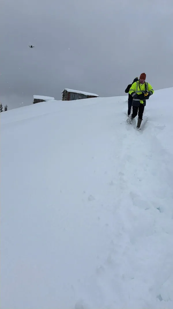 Fatih Kaya, Ali Kalın, Uğur Mert Kalın, Oktay Yıldırım, Deniz Yıldırım ve Semih Mert Alagöz’den oluşan ekip, ilk olarak dron yardımıyla bölgede keşif uçuşu gerçekleştirdi. Yapılan kontrollerde hayvanların yaklaşık 2 bin 100 rakımda bulunan bir kışlada, karla kaplı bir yayla evinin çevresinde hayatta kalmaya çalıştıkları tespit edildi.